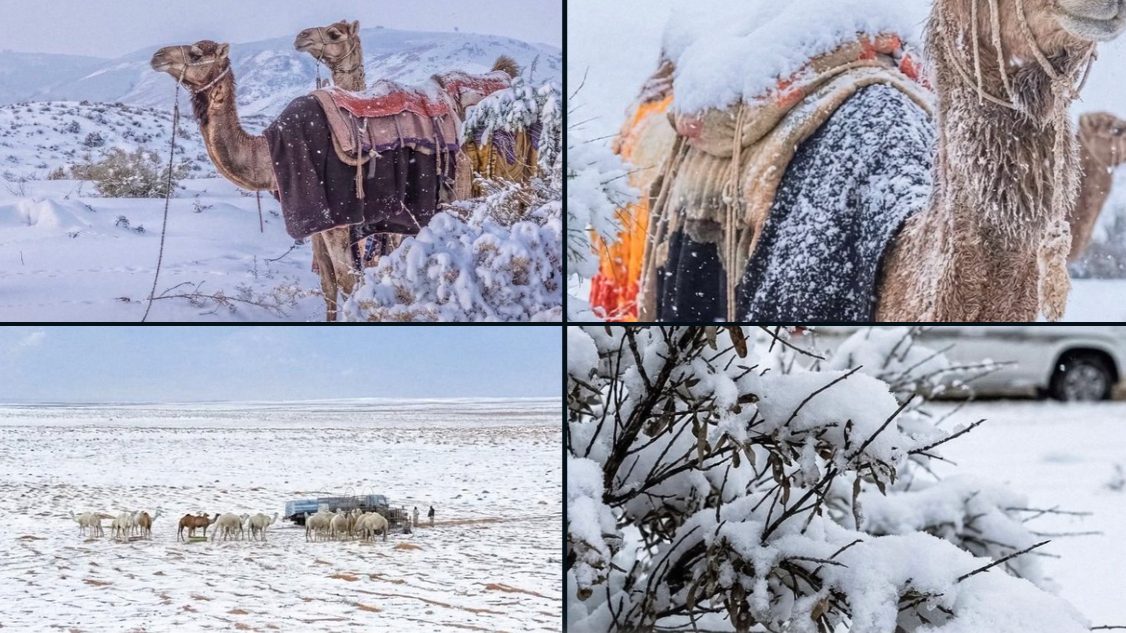 Saudi Arabia’s desert covered in snow after a super-rare winter storm in some parts of the country. pic.twitter.com/4VJelzahOP